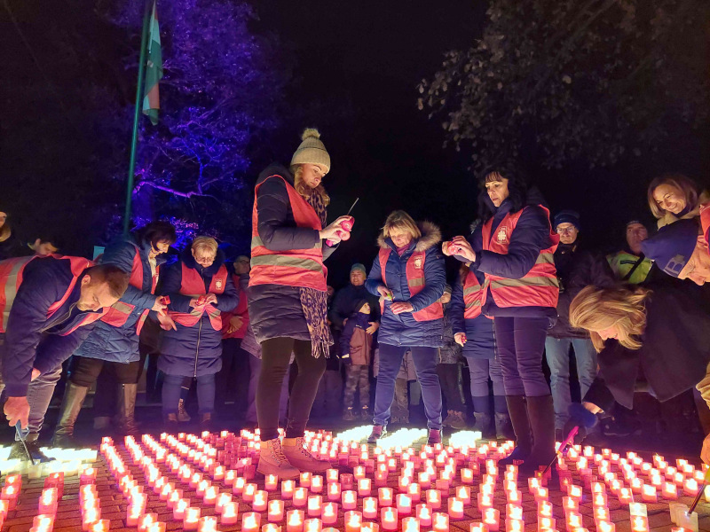 Ezt követően a meghívott vendégek a Karitász-önkéntesekkel közösen ötszáz mécsest gyújtottak meg, melyek a szeretet lángoló keresztjét, a tevékeny felebaráti szeretet szimbólumát formázták.