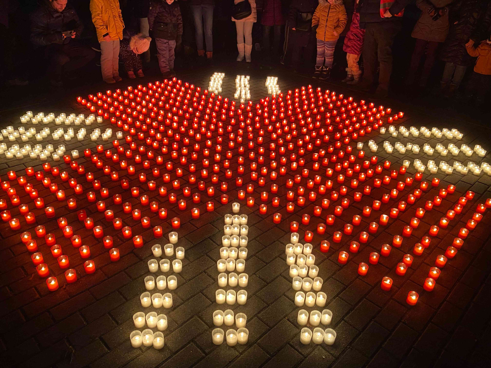 Ezt követően a meghívott vendégek a Karitász-önkéntesekkel közösen ötszáz mécsest gyújtottak meg, melyek a szeretet lángoló keresztjét, a tevékeny felebaráti szeretet szimbólumát formázták.