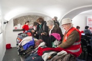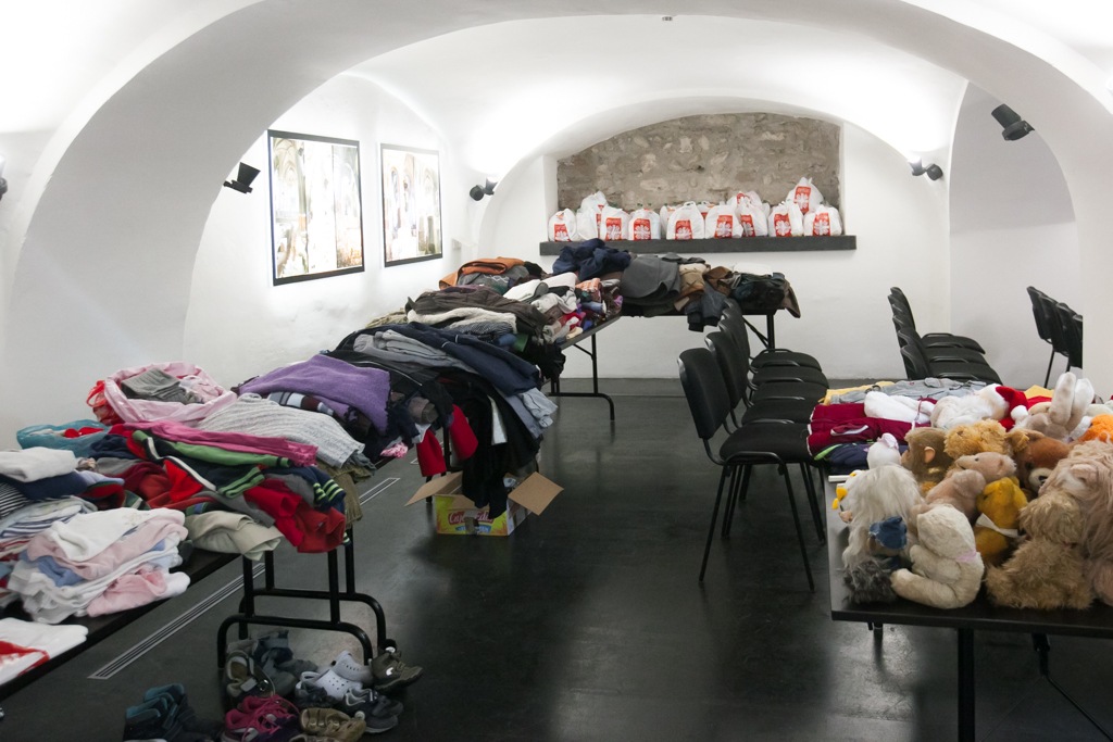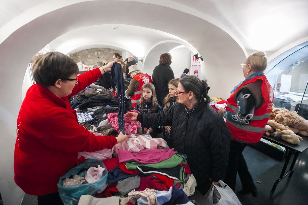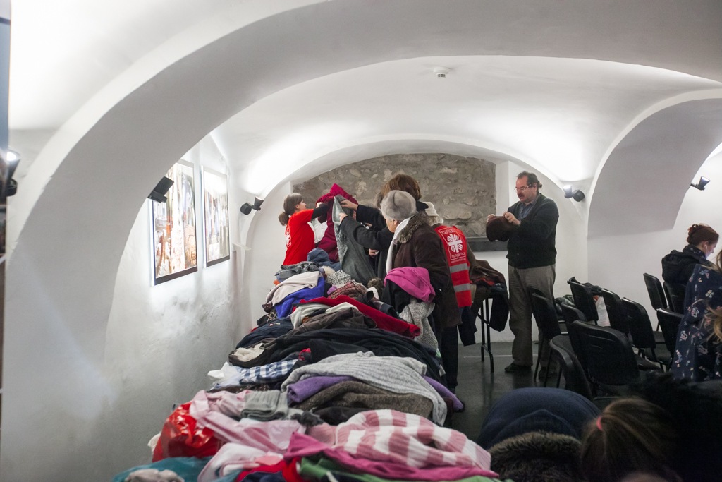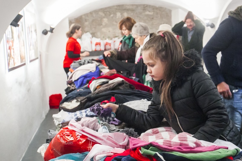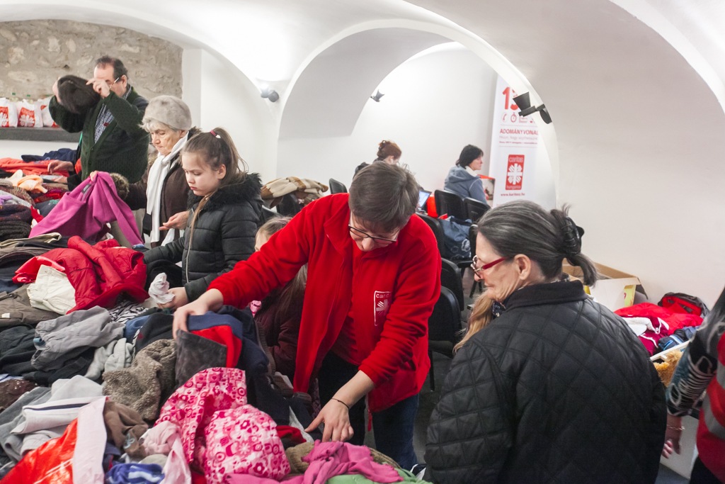 A sajtótájékoztató végén élelmiszercsomagokat vehettek át a meghívott plébániai családok, és téli ruhákból válogathattak.
