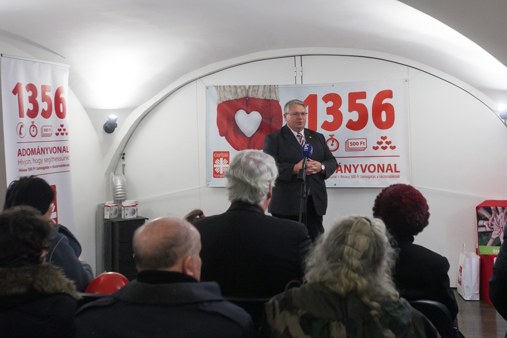 Ezt követően Écsy Gábor, a Karitász igazgatója elmondta: a nélkülözőkért indított ünnepi összefogásnak kettős célja van: ünnepé tenni a karácsonyt és könnyebbé tenni a hétköznapok terheit. Meleg otthont biztosítani téli ruhákkal, kályhákkal és tűzifával, élelmiszert vinni a családoknak, hogy ne üres asztalnál kelljen megélni a karácsony, közös ünnepségre hívni a magányos és szegény körülmények között élő időseket.